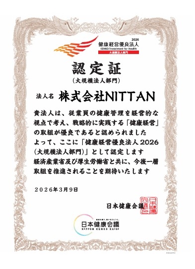 株式会社NITTAN(本社:神奈川県秦野市・東京都新宿区、代表取締役社長:李 太煥)は、2026年3月10日に経済産業省で選定する「健康経営優良法人認定制度」において「健康経営優良法人2026」(大規模法人部門)に認定されました。